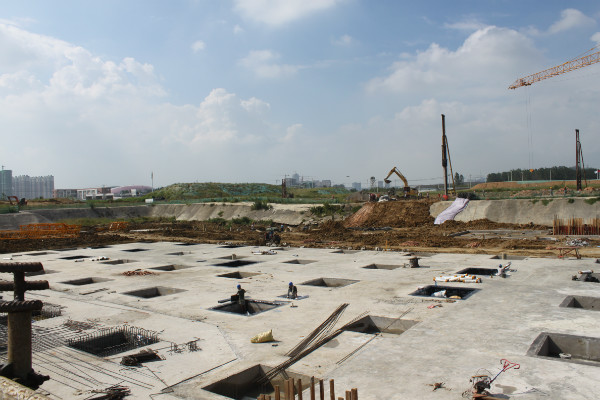 其中,1#、2#楼已施工至地面一层结构;17#、18#楼建设至七层结构;3#楼地下室底板施工已完成,7#楼地下室底板施工一半,8#、23#、13#、14#楼地下室顶板正在施工;11#、12#基础垫层正在施工;15#、16#、19#、20#、21#,五栋楼桩机进场开始打桩;各住宅楼之间地下室正在施工;地源热泵钻孔共2077口,已施工1181口,管材敷设479000余米,水平主管沟施工15条,管材敷设275000余米。